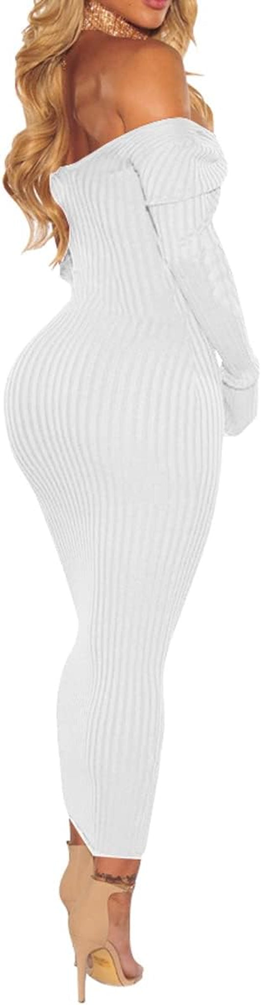 Women’S Bodycon off Shoulder Sweater Dresses for Autumn and Winter White